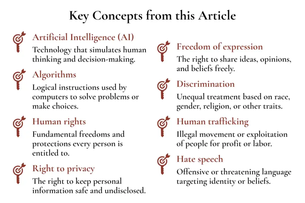 AI works by collecting and analyzing massive amounts of data. This data often includes information about people – what we search, where we go, what we like. If this data is misused, our right to privacy can be violated. AI can also make decisions about people’s lives, like predicting who might commit a crime or deciding whether someone gets a job. If these systems are biased or wrong, they can lead to discrimination and unfair treatment, violating our right to equality.